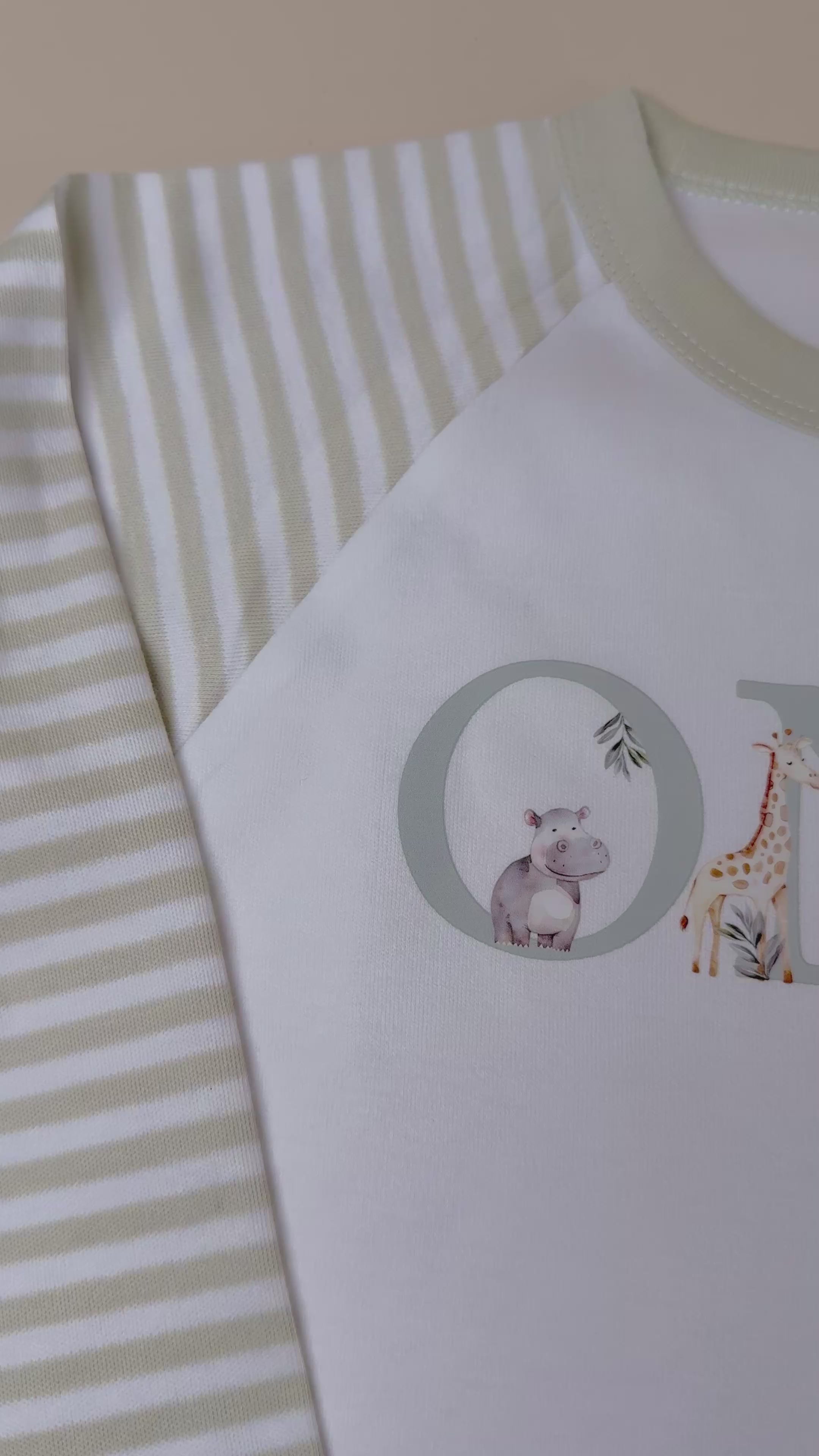 - Stylish Sage Green: Beautiful sage green and white striped pattern with coordinating raglan sleeves
