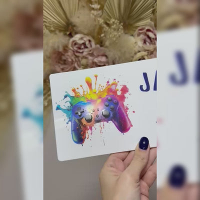 Level up your gamer's bedroom with this vibrant personalized acrylic door sign! Featuring an explosive paint splash design around a realistic gaming controller, this eye-catching sign perfectly captures the energy and excitement of gaming culture while marking their personal gaming territory.