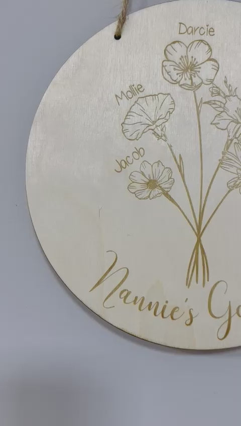 This lovely plaque features intricate engravings of birth flowers, one for each person.