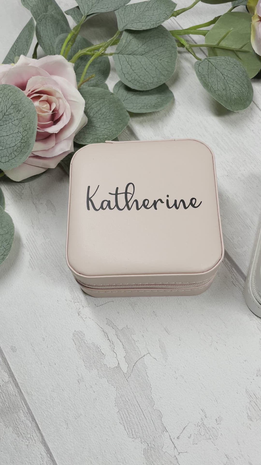 A cute little personalised jewellery box to carry around your favourite jewellery pieces. You can choose the colour of the box and text colour.