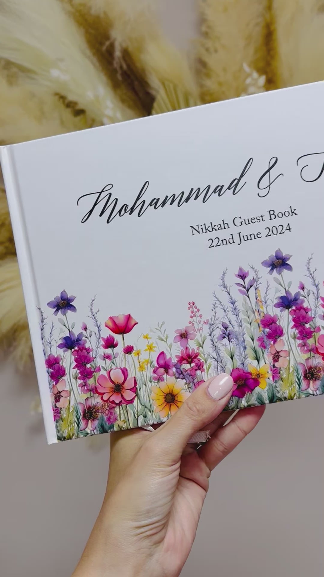 A stunning vibrant floral wildflowers style guest book for all your loved ones to leave messages and well wishes on your special day. You will be able to look back in years to come and remember your special day.
