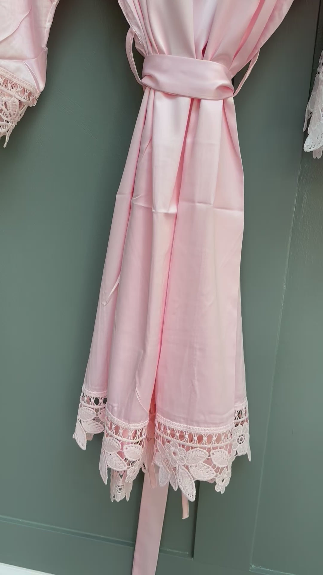 This satin dressing gown is adorned with soft, beautiful silk lace trims. Our beautiful bridesmaid robes are the perfect gift for your bridal party, maid of honor, and flower girls.